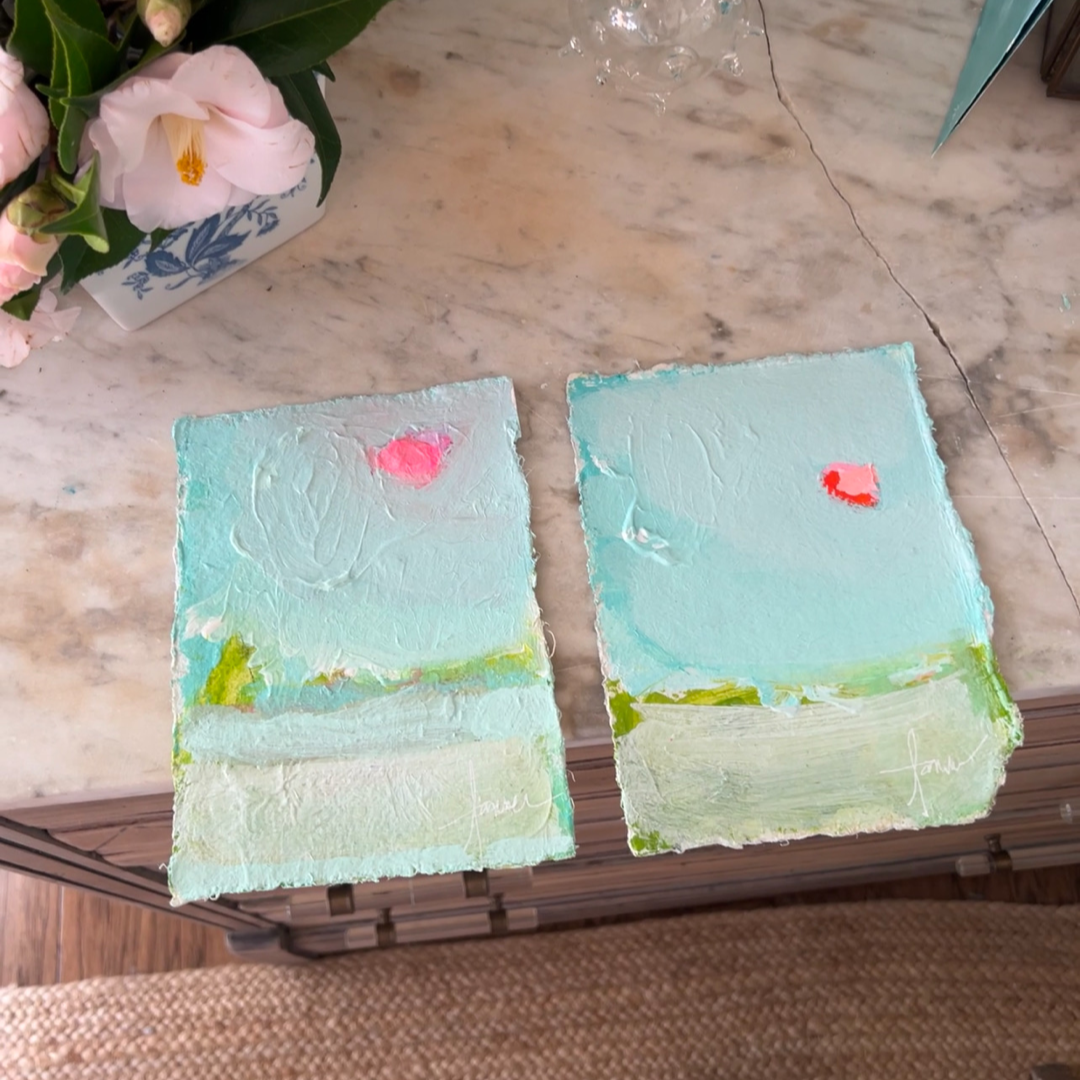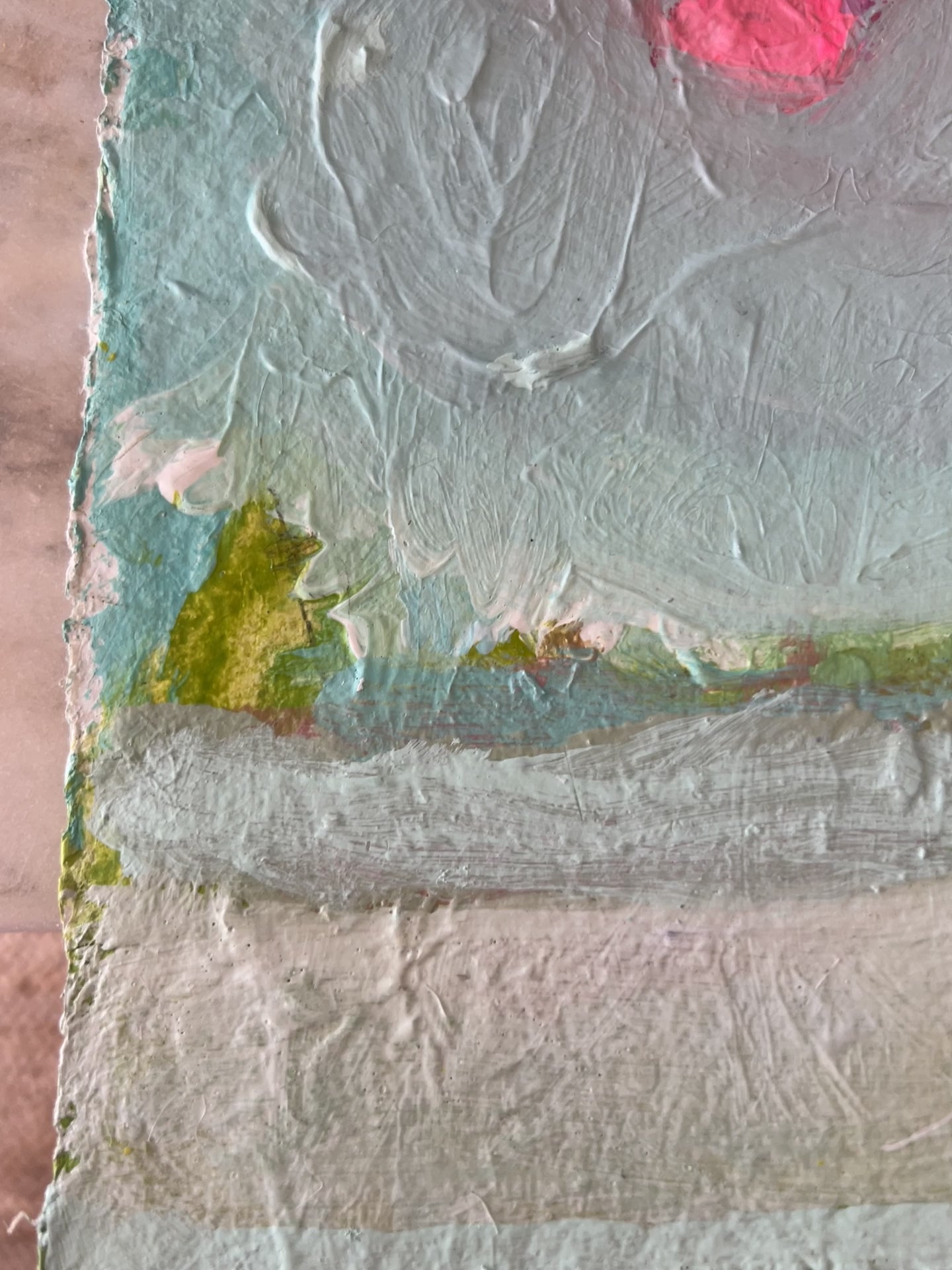 unframed abstract landscape on sourced handmade paper with torn/deckled edges