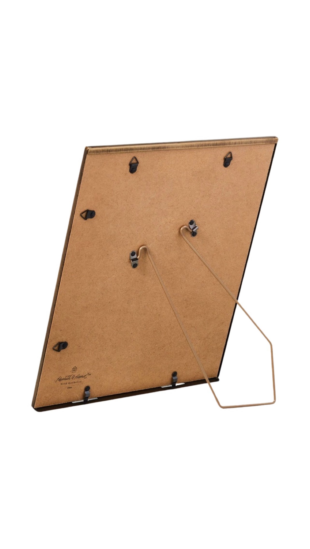 Oversized off-white mat and versatile removable easel back and built in hooks for option for wall hanging or tabletop (shown in last picture)